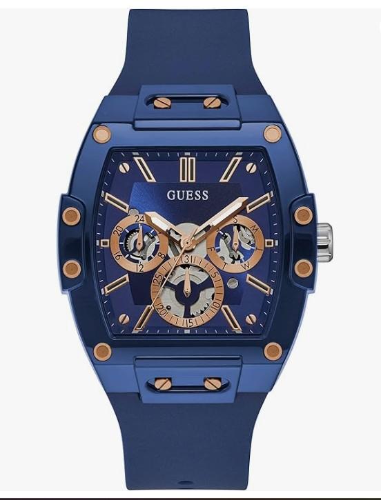 Relógio masculino Guess Trend Tonneau de 43 mm - Azul / Gold Rosê